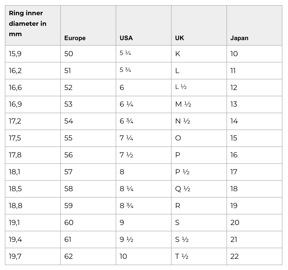- Finndu þína stærð: Notaðu töfluna til að finna samsvarandi hringastærð við þvermáliðið.